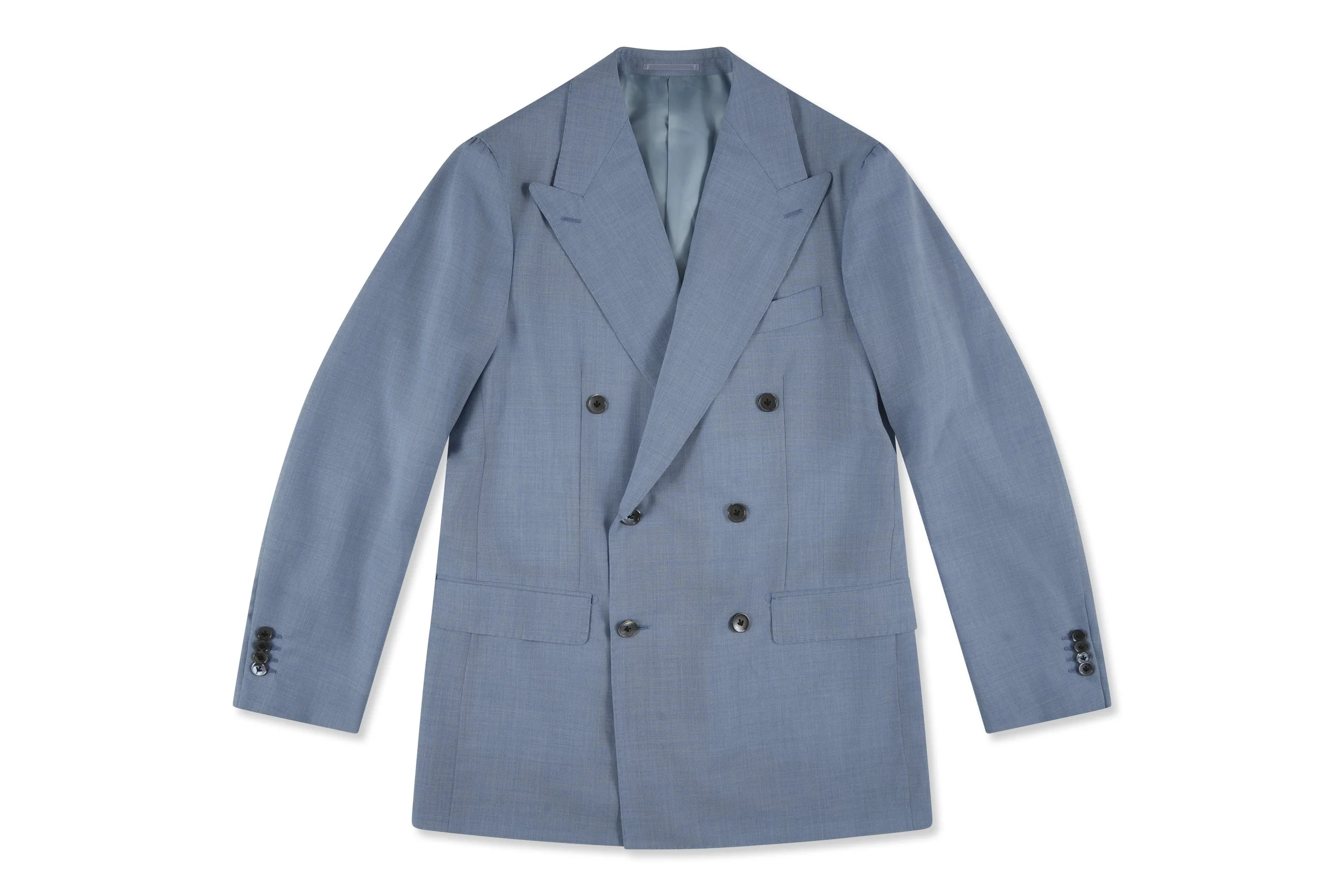 NEW DESIGNS 10cm bib shawl lapel & customisable hanger loop colour formal treatment collar edge piping double breasted 6 buttons improved button position & 13cm peak lapels large rounded pocket with flap western pocket western pocket welted chest pocket & pointed flap and concealed snap button side pocket 10cm bib shawl lapel & 2mm pick stitching 3cm wide formal side stripe unlined jacket sleeves long point collar & LW08 navy and red trims long point collar & snap buttons & raglan sleeve 13cm notch lapel shirt jacket fully lined → Learn more about New Designs